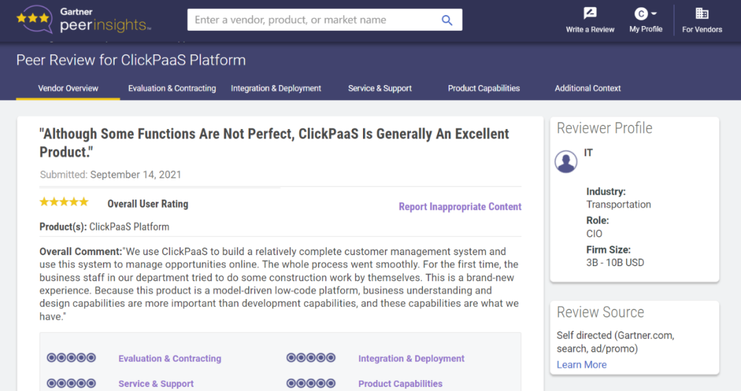Tips::::【Peer Insights】——用户对企业IT产品和服务发布真实评价的平台。。目前已有355个市场,,255,000条经过验证的评价。。。。每一条评价Gartner会针对参评企业营收规模及参评人员信息做验证、、、评价内容做多维核实。。